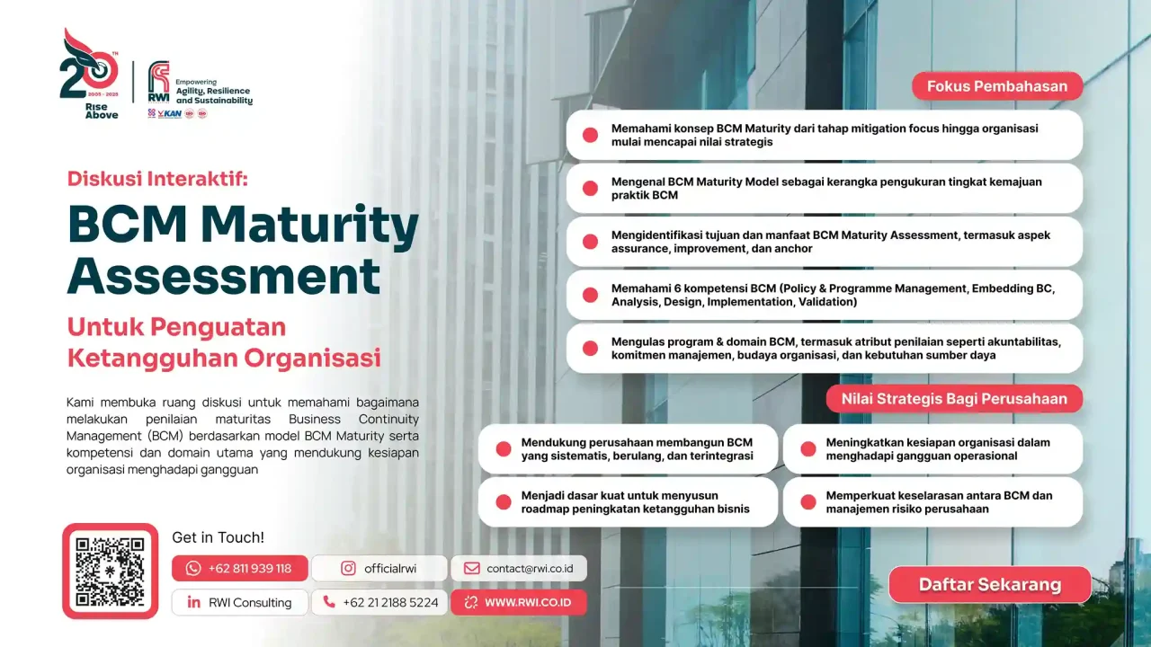Layanan Enterprise Risk Management untuk menyambungkan BCMS dengan disiplin risiko korporat: Klik di sini.